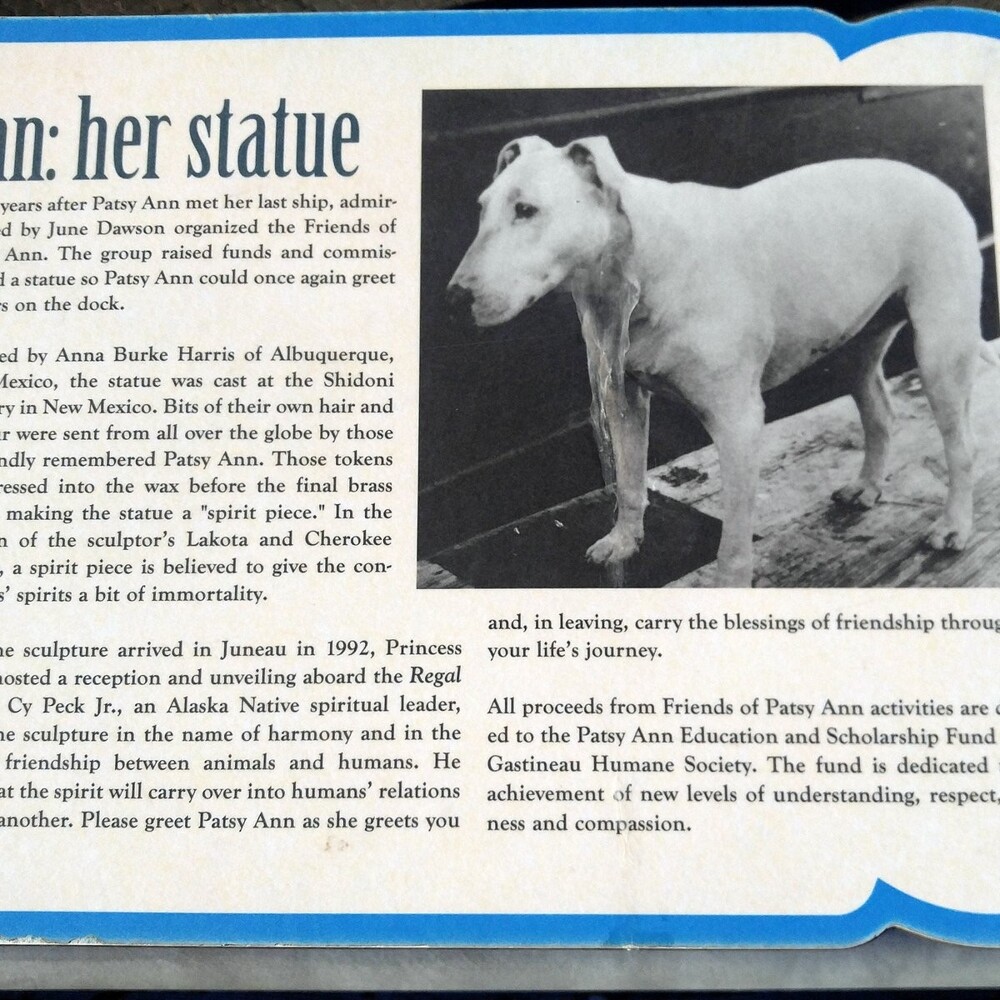 На причалі міста Джуно на Алясці стоїть бронзова фігура бультер'єра на прізвисько Петсі Енн. Собака сидить і дивиться у бік каналу Гастіно, де причалюють кораблі, що прибувають. Статуя знаходиться на тому місці, де понад десять років Петсі Енн вітала всіх пасажирів, що висаджуються на причал у Джуно, і отримала звання «Офіційної зустрічаючої».