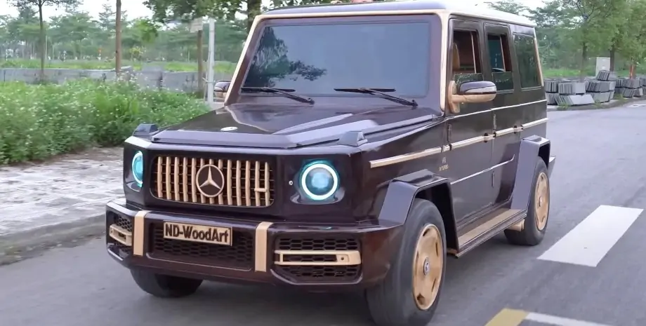 "Гелендваген" відтворили у дереві до найдрібніших деталей. Позашляховик здатний самостійно пересуватися, у нього працюють фари та склоочисники.