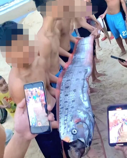 Наприкінці травня морського гіганта помітили викинутим на берег. Люди були вражені, виявивши цю істоту. Вони взяли гігантську рибу на руки, а потім розтягли її на прямому шматку деревної кори. Багато місцевих жителів просто знімали її на свої телефони. Видання зазначає, що група людей, можливо, з'їла велику рибу під час пляжного бенкету.