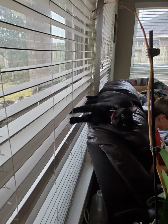 «Якось Піт також привів додому друга, іншого кота, якого ми прийняли за безпритульного, але виявилося, що він жив на вулиці позаду нас», – розповіла Холлі. «Друг Піта приходив перекусити і забирав його з собою на цілий день, щоб погратися і прогулятися околицями, а деякі сусіди надсилали повідомлення і казали, що бачили, як вони гуляли разом. А ще він вранці тусується з усіма учнями середньої та старшої школи на їхній автобусній зупинці, а вдень чекає, коли вони вийдуть з автобуса, щоб погладили його по дорозі додому, і вони всі його знають».