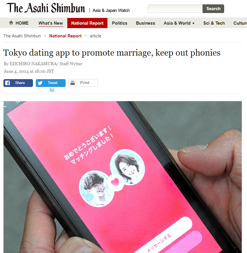 Більше того, користувачі підписують зобов'язання про те, що вони не збираються використовувати програму для випадкових відносин. Чиновники Токіо заявили, що суворі вимоги необхідні для запобігання проблемам з довірою, від яких страждають існуючі програми для знайомств.
