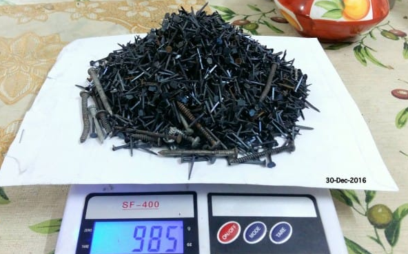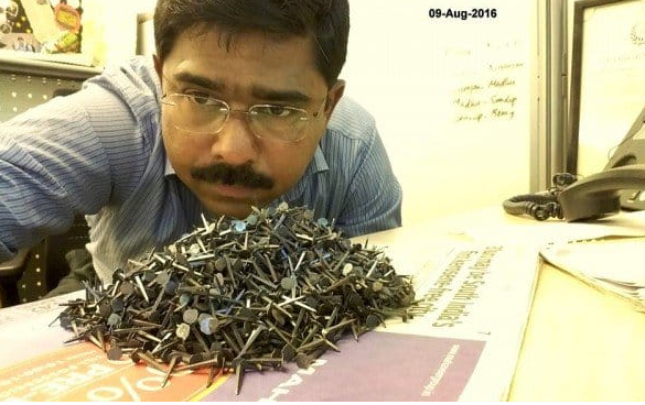 Індійський інженер Бенедикт Джебакумар взяв за правило збирати з дороги дорогою на роботу ... цвяхи! І за 5 років зібрав 50 кілограмів, по 10 кілограмів на рік набирав тобто, просто по дорозі на роботу.