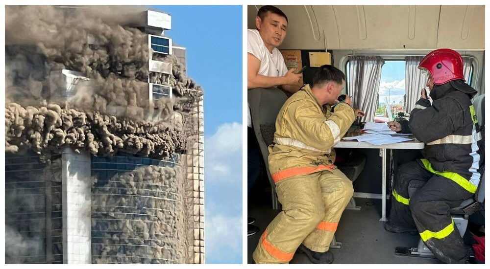 ЗМІ публікують кадри пожежі 26-поверхового житлового комплексу Астани (2 фото + 3 відео)