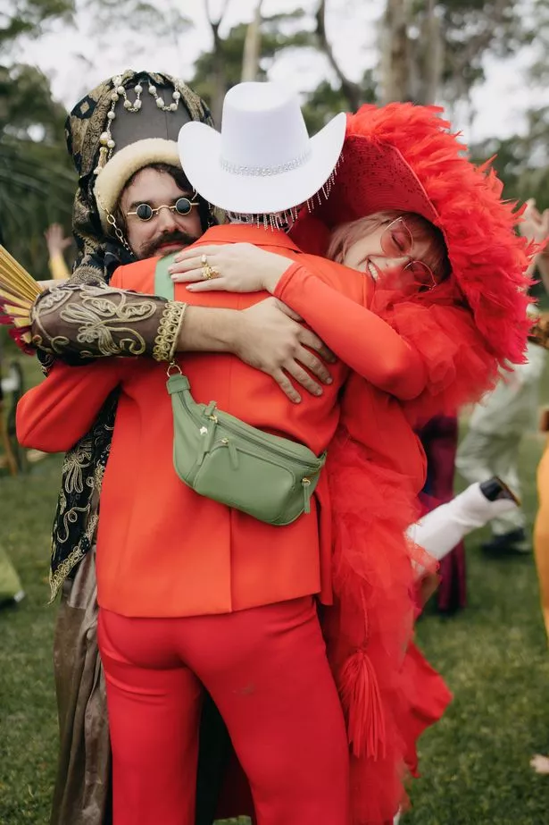 Свято включало безліч традиційних весільних елементів: клятви, тости, промови, застілля за довгим столом, урочисту церемонію, офіційні фотографії і танці до ранку. Однак Карлі відмовилася від білої сукні та попросила своїх "наречених" дотримуватися "барвного" дрес-коду.