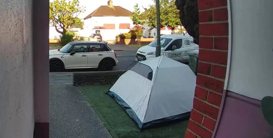 Сім'я з Дартфорда, прокинувшись, виявила, що незнайомець встановив намет у їхньому дворі. 38-річна Еріка Уайт не могла повірити своїм очам, коли її син помітив незвичайне видовище на світанку близько 6:35 ранку. Нахабний чоловік розташувався просто на галявині перед будинком. Збентежена мати трьох дітей вирішила піти і попросити зухвалого незнайомця забратися зі своєї території, але той не хотів її слухати.