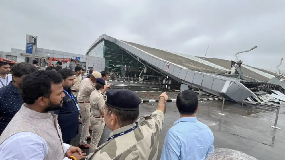В Індії через сильні зливи обвалився дах аеропорту, є жертви (2 фото + 2 відео)