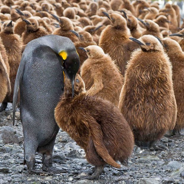 У субантарктичних пустках на зайчику з лужком сподіватися не доводиться. Так, твоєю опорою та підтримкою буде друга половинка: пару королівських пінгвінів збережуть на все життя. Але навіть так потрібно мати колосальний досвід виживання, щоб прогодувати себе та дитину в суворих умовах південного полюса.
