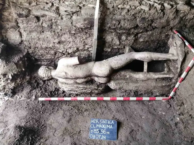Статую виявили під час розкопок у Клоаку Максима, римській міській каналізаційній системі. Вважається, що мармурова скульптура заввишки понад два метри зображує Гермеса, вісника богів у грецькій міфології. Гермес, відомий своєю швидкістю і здатністю вільно переміщатися між смертним та божественним світами, є важливою фігурою у давньогрецькій релігії.