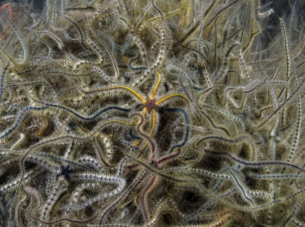 Привієєє, морська зірка! 400 мільйонів років не бачились! На фото один з різновидів офіур.