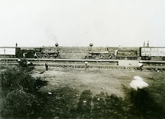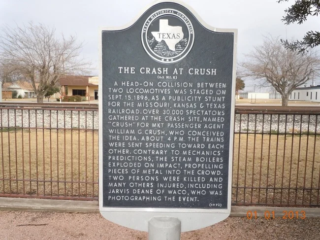 Звичайно, будь-який експеримент, який проводиться перший раз, пов'язаний з ризиком. Так було і з містом Краш у Техасі, побудованому 1896 року. Цей рекламний трюк, який правильніше називати «Аварія в Краші», вигадали виключно як публічне видовище.