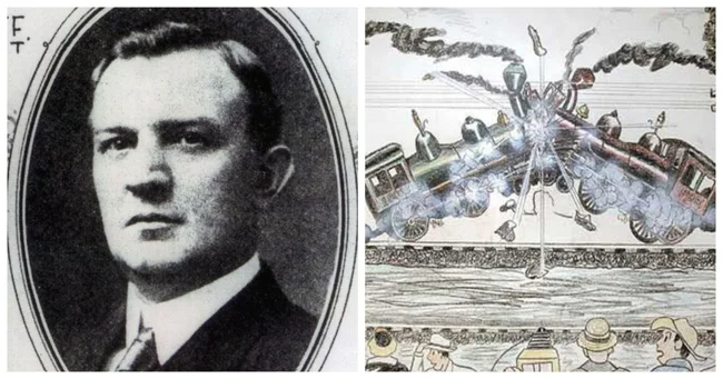 Краш був головним пасажирським агентом залізниці Кеті, яка проходила маршрутом Міссурі - Канзас - Техас, що було дуже важливо і відповідально. Він придумав зіштовхнути два потяги один з одним, щоб продемонструвати приголомшливу міць локомотивів, а також як рекламний трюк, щоб підвищити обізнаність публіки.
