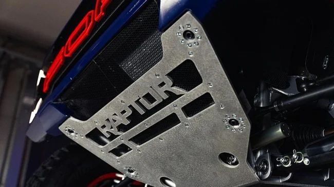 Баггі розроблений за участю фахівців із M-Sport. Raptor T1+ базується на сталевій просторовій рамі, кузовні панелі виконані з вуглепластику. Повністю незалежна двоважільна підвіска доповнена регульованими койловерами Fox з виносними резервуарами та 37-дюймовими шинами на 17-дюймових дисках. Зупинятимуть баггі гальма Alcon з 355-міліметровими дисками та 6-поршневими супортами.