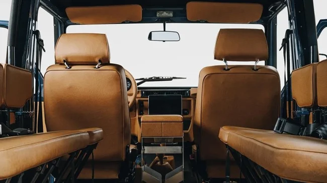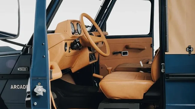 Крім стандартних для подібних проектів реставраційних робіт, фахівці з Arcade Cars істотно допрацьовують інтер'єр. Утилітарний салон 230-го обшивають дорогими сортами шкіри та алькантари, встановлюють сучасний головний пристрій з підтримкою Apple CarPlay та Android Auto і ховають усередині потужну аудіосистему, намагаючись при цьому максимально зберегти загальний вигляд класичного геліка.