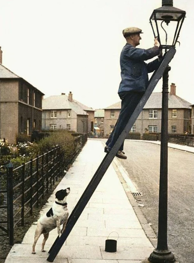 Ліхтарник та його пес. Шотландія, 1937 рік.
