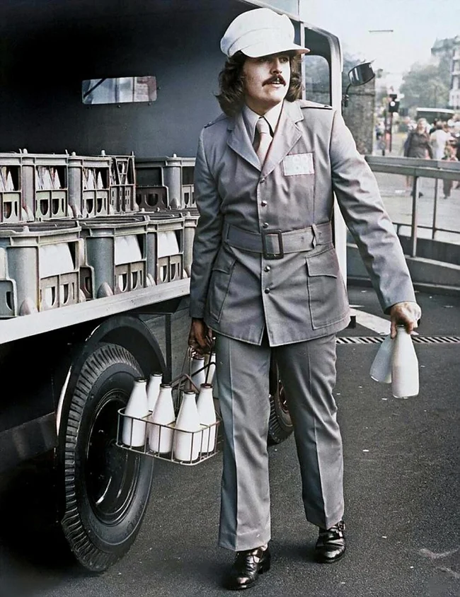 Дуже цікавий костюм, молочник немов член британської рок-групи.