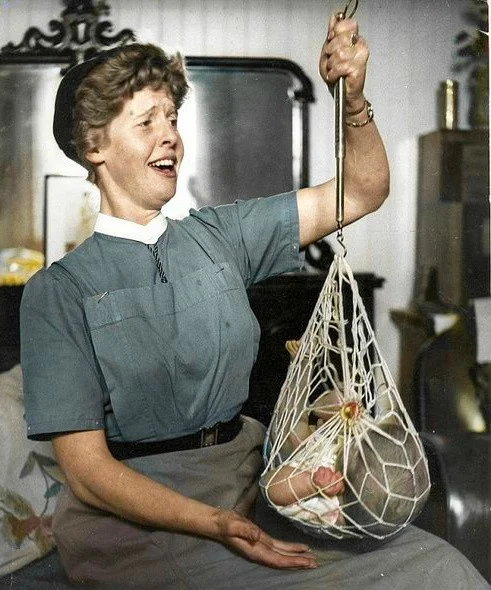 Медсестра зважує дитину. Шотландія, 1959 рік