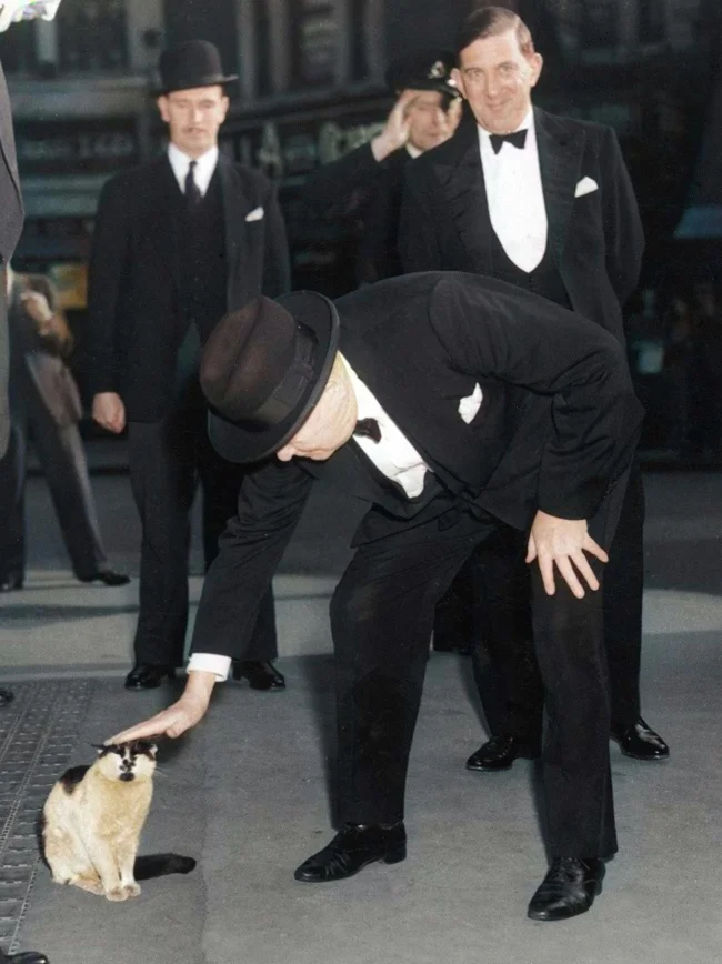 Вінстон Черчілль гладить кішку на Ліверпуль-стріт, Лондон, 24 травня 1952 року.