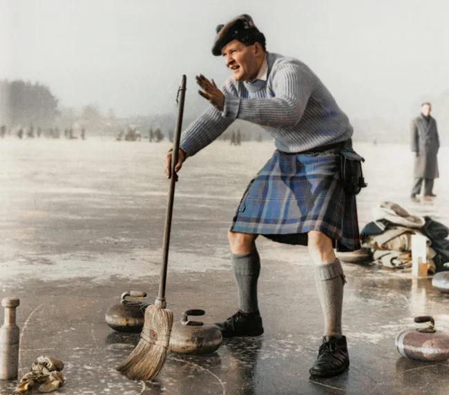 Відповідальний момент матчу у керлінг-клубі на озері Лох-Лівен. Шотландія, 1959 рік.
