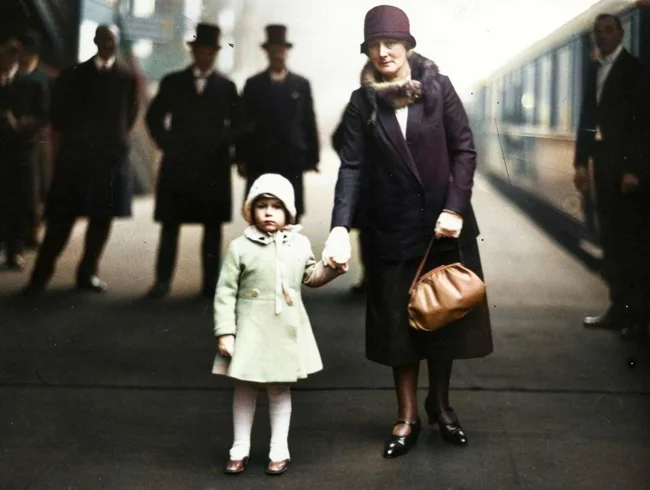 Майбутній королеві Єлизаветі три роки. На вокзалі з нянею, 1929 рік.