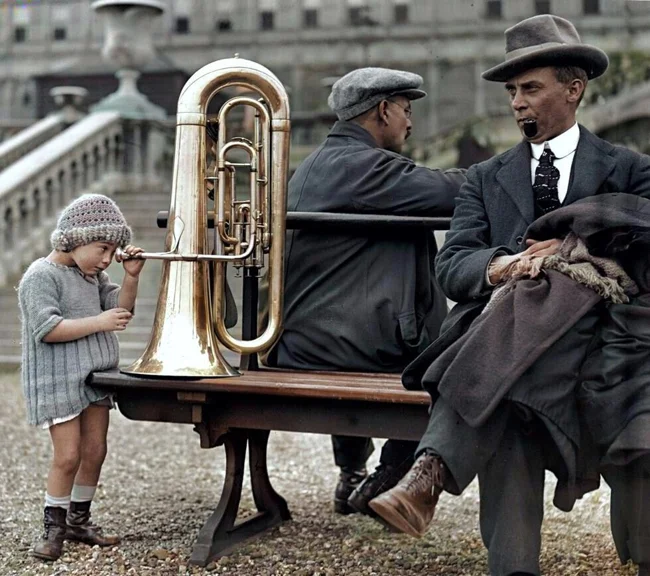 Дівчина з тубою на національному фестивалі оркестрів у Лондоні, 1923 рік.
