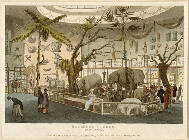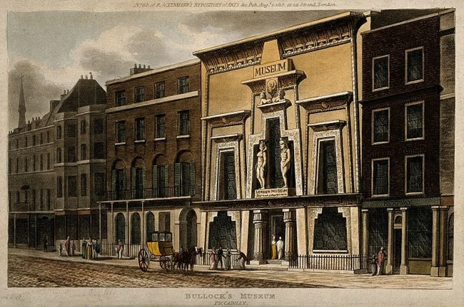 Вільям Баллок (бл. 1773-1849 рр.) вперше відкрив свій музей у Ліверпулі у 1795 році, заробляючи як ювелір та золотих справ майстер. Експозиція музею, включаючи витвори мистецтва, предмети природної історії, зброю та дивовижі з південноморських подорожей капітана Кука, була перевезена до Лондона в 1809 році і спочатку відкрилася як Ліверпульський музей на Пікаділлі. У 1812 році він переїхав до нещодавно побудованого Єгипетського залу, і, незважаючи на його популярність, Баллок продав вміст у 1819 році і здав зал в оренду для проведення короткострокових заходів. На останній виставці Баллока в 1824 були представлені артефакти з стародавньої і сучасної Мексики, зібрані під час його подорожей в 1822-1823 роках.