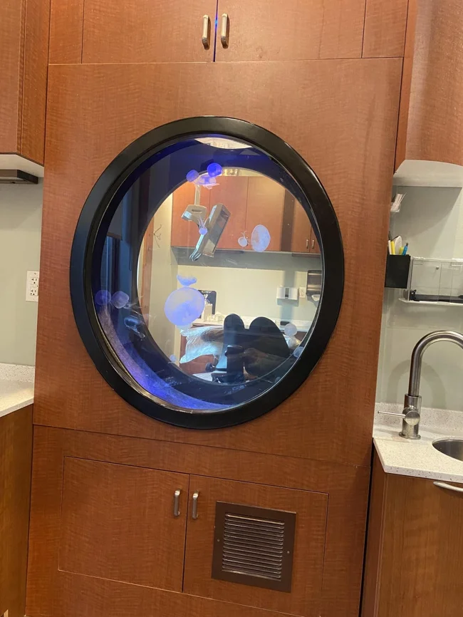 У кабінеті стоматолога встановлено такий акваріум з маленькими медузами