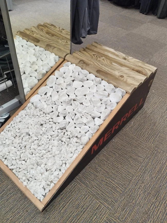 У цьому магазині спортивного інвентарю є кілька поверхонь для тестування взуття