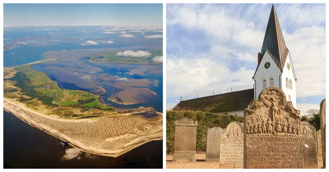 Приблизно за 60 кілометрів на північ від Гельголанду в Північному морі, біля західного узбережжя Німеччини, знаходяться острови Амрум і Фер. Входять до складу Північно-Фризьких островів, вони є батьківщиною цікавої традиції, відомої як "Sprechende Grabsteine" або "нагробки, що говорять". На відміну від звичайних табличок, ці надгробки, розкидані по різних цвинтарях островів, містять написи, які дають уявлення про життя та історію померлих. Кожен надгробок прикрашений різьбленим зображенням або сценою, яка представляє професію, досягнення чи значущі події життя людини.