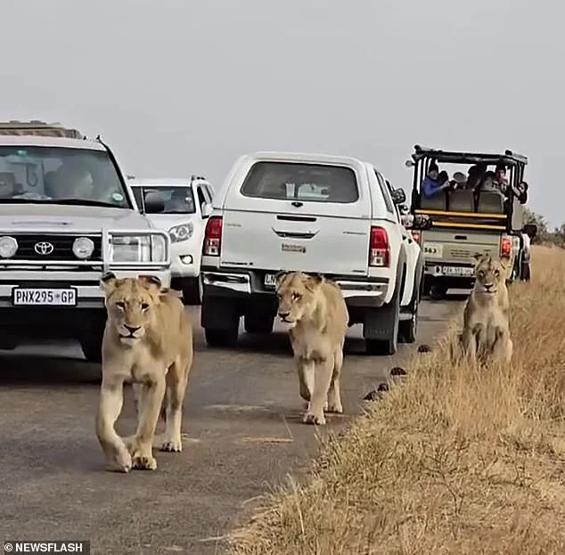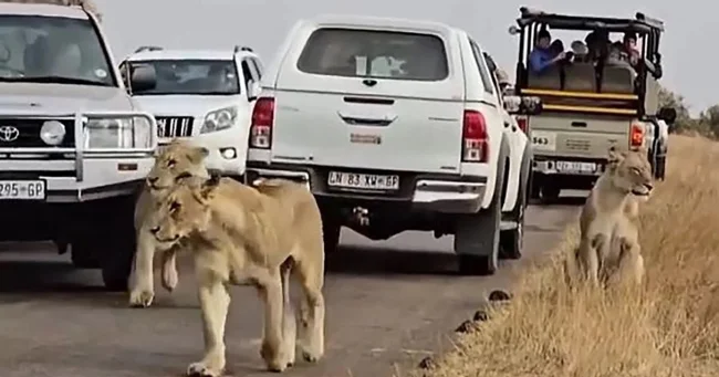 9 серпня кілька автомобілістів зупинилися на шосе у Національному парку Крюгера, ПАР, щоб пропустити трьох левиць. Поки туристи із захопленням спостерігали за великими кішками, один водій поводився обурливо.