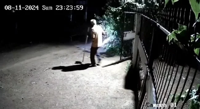 Через кілька секунд літній чоловік із ліхтариком вийшов оглянути околиці і переконався, що небезпека минула. ![]()