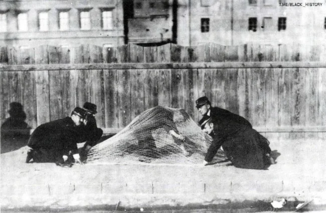 15. Медичні працівники психіатричної клініки відробляють методику упіймання буйних безумців, 1903 рік ![]()