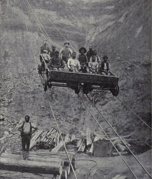 11. Шахтарі спускаються в алмазну копальню Кімберлі в Південній Африці, 1880-і роки