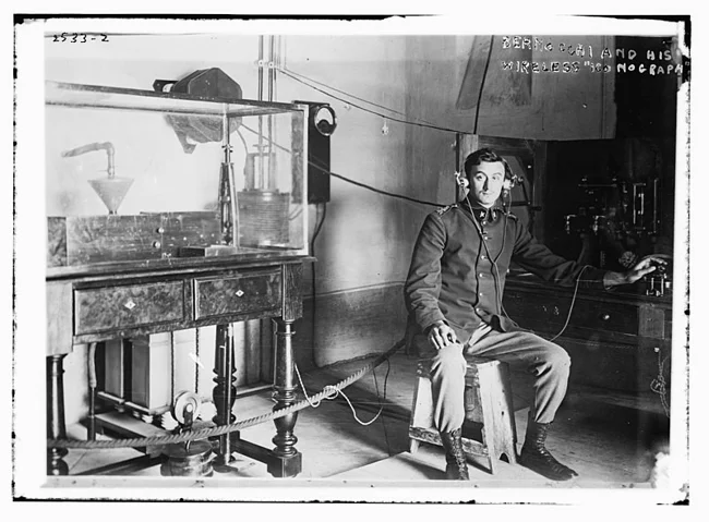 8. Франческо де Берноккі та його бездротовий «іконограф», початок 1910-х. Бездротовий іконограф – попередник факсу. Пристрій міг передавати повідомлення та зображення. Патент на нього був отриманий Берноккі у 1912 році