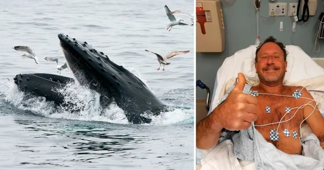 Коли горбаті кити розкривають пащу, щоб нагодуватись, вони можуть не помітити людину. Так і сталося із Паккардом.