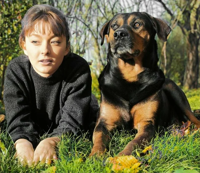Актриса Анастасія Вертинська на лісовій прогулянці зі своїм псом Джимом, 1964 рік.