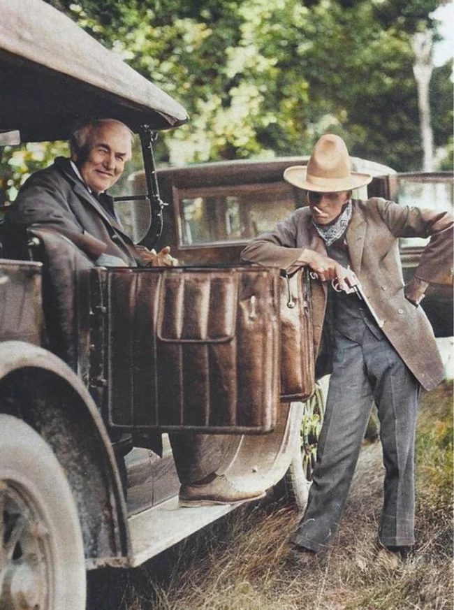 Два генії початку ХХ століття на одній фотографії. Обидва винахідники були хорошими друзями, разом подорожували на машинах штатами і разом працювали над різними проектами.