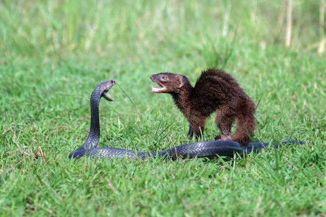 Хто у підсумку переміг саме у цій бійці, не уточнюється. Але, як зазначають експерти, у 80% таких сутичок переможцями стають саме мангусти. Їхній організм здатний впоратися з отрутою кобри, а вроджена реакція та товста шкіра створюють для цих тварин ще більше переваг.