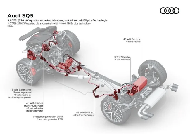 У Європі Q5 запропонують лише із силовими установками, доповненими електромоторчиком на 24 л. с. та 230 Нм у поєднанні з 1.7-кіловатною батареєю. Базові модифікації отримають 2-літрові двигуни - бензиновий та дизельний. Перший розвиває 204 л. с. і 340 Нм, другий - стільки ж, але моменту в нього вже 400 Нм. У трансмісії винятково 7-ступінчастий робот. Але якщо для бензинової версії доступні передній та повний привід, то дизельна може бути лише повнопривідною. Розгін до 100 км/год займе 7.2 та 7.4 секунд відповідно.