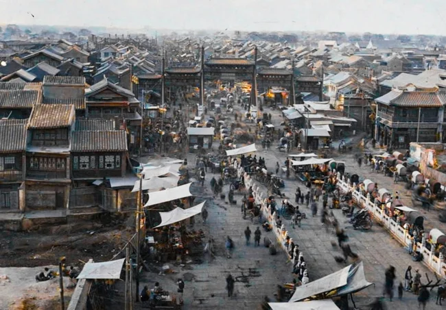 Перегляд вулиці в Пекіні, видно з вікна антикварного магазину в 1965 році. Фотограф Марк Рібу був одним із перших західних фотографів, які зробили знімок у комуністичному Китаї.