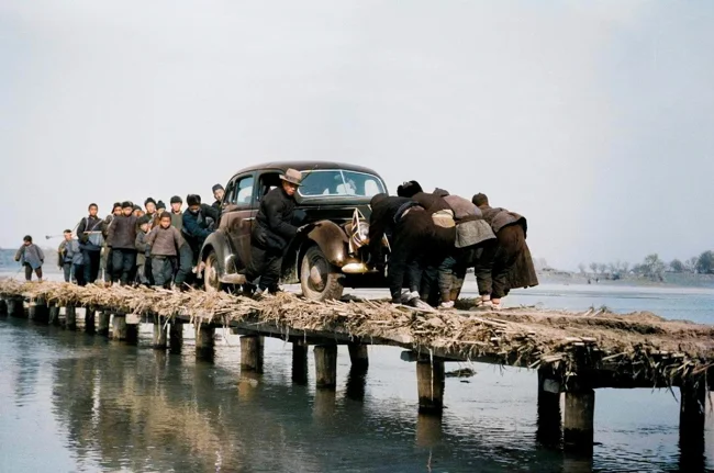 Китайці допомагають делегації з Великобританії проїхати мостом.