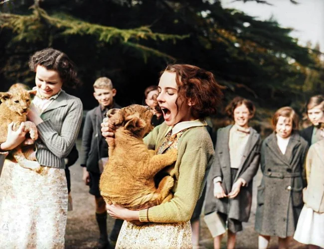 Сестри Моттерсхед взяли левенят на виховання, бо зоопарк не міг подбати про них під час війни. Батько дівчат засновник Честерського зоопарку Джорджа, тому вони з дитинства знали, як поводитися з дикими тваринами.