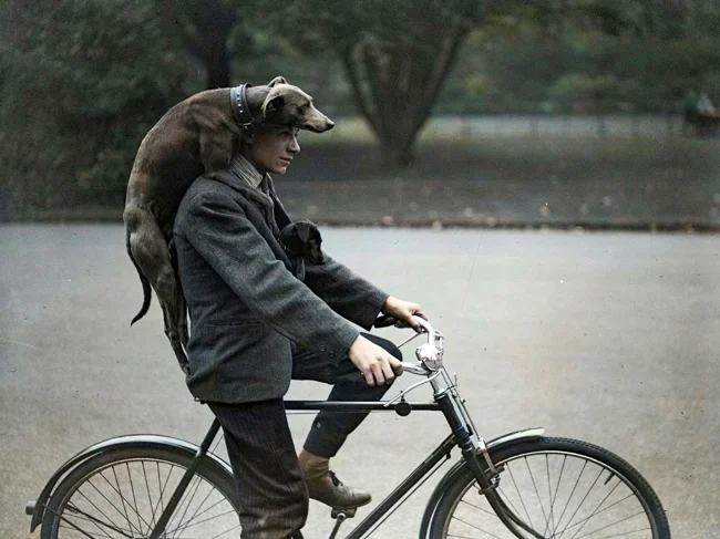 Не дуже зрозуміло, чи подобається собаці такі подорожі з господарем, чи вона в стресі чекає кінця поїздки.