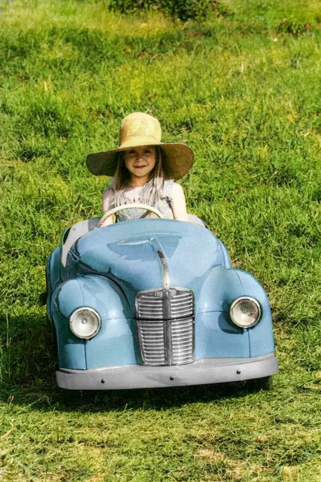 Дівчинка у педальному автомобілі Austin J40, 1950-і роки.