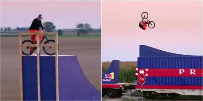Начебто стоїть на місці: чемпіон світу зі слоупстайлу проїхався велосипедом по рушійному поїзду (3 фото + 1 відео)