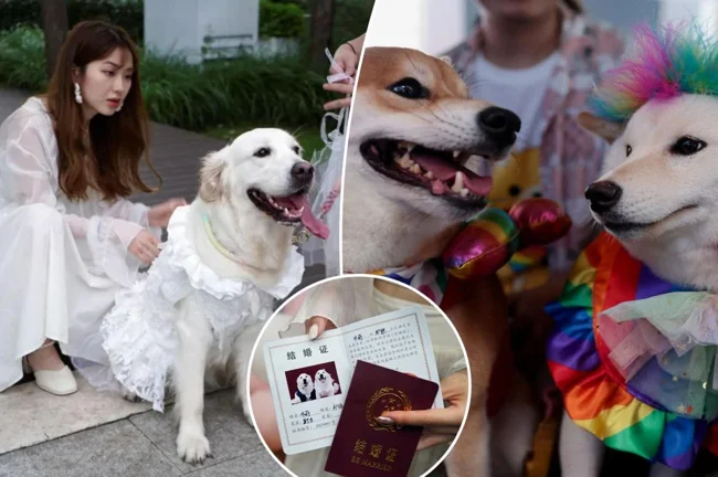 Китайці почали одружувати собак замість дітей (5 фото + 1 відео)
