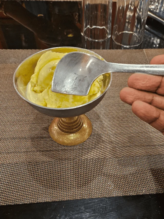 Ложка для морозива, яка дозволяє зібрати залишки десерту, що розтанув, з дна миски.