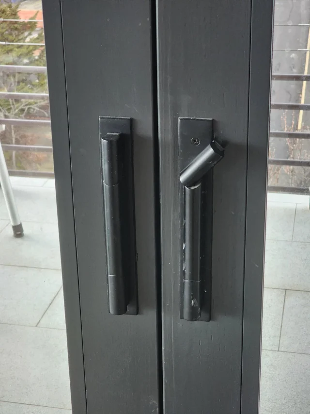 Цікаві ручки розсувних дверей. Нахилена верхня частина – розблокована, пряма – замкнена