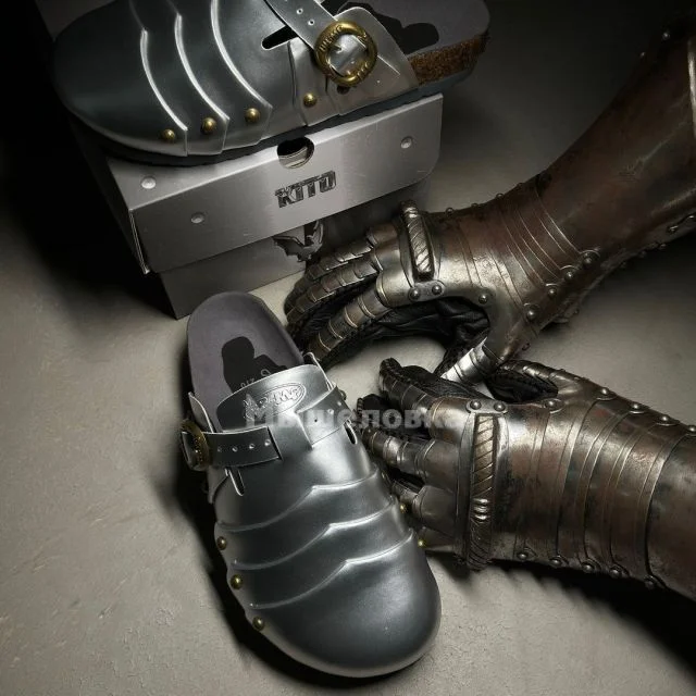 Ну що... здається епоха кроксів добігає кінця! Зустрічайте сильні лицарські підкрадулі від бренду KITOWARES. Чудове взуття для маленького хрестового походу на якомусь курорті. У продажу із 4 жовтня за ціною $110 за пару. Треба брати.