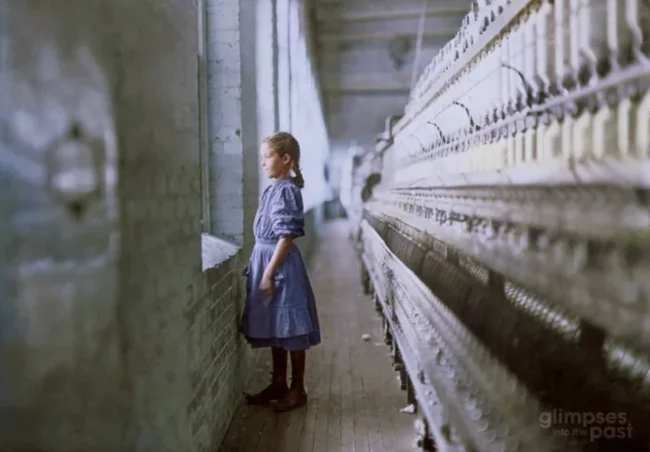 6. 10-річна прядильниця дивиться у вікно бавовняної фабрики, на якій вона працює більше року. Лінкольнтон, Північна Кароліна. Листопад 1908 року