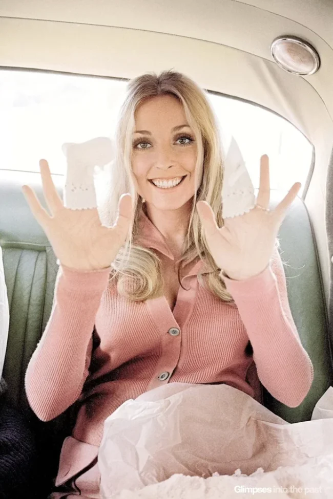 20. Шерон Тейт демонструє нещодавно куплений дитячий одяг, 1969 рік ![]()